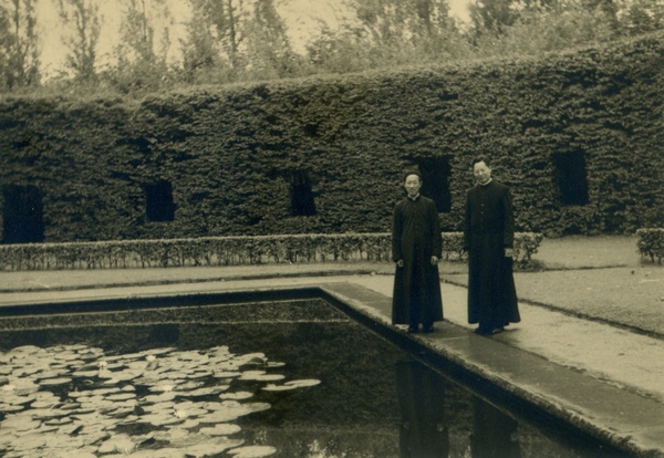 今天早上和母親、弟弟前往新店崇光女中拜訪高齡93歲的李鴻皋神父,李神父是高父親三屆的學長(每3年招生一次),兩人皆河北省永平府小修院出身。於此時刊出五十多年前,父親從羅馬前往比利時拜訪李神父時兩人合拍的照片,別有意義。